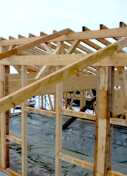 | Glücklicherweise ist auch heute noch der hölzerne Dachstuhl in den meisten Fällen der krönende Abschluss vieler Neubauten. So werden heute die Dachformen und ihre gestalterischen Möglichkeiten wiederentdeckt. Neben dem schlichten Satteldach finden sich das beherrschende Walmdach, der ländliche Krüppelwalm, die städtische Mansarde oder die klassisch-modernen Pultdächer wieder. |